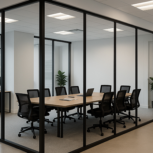 4) Modern Estetik: Cam bölmeler modern, profesyonel bir görünüm yaratır ve ofisi doğal ışıkla doldurur, yapay aydınlatmaya bağımlılığı azaltır.